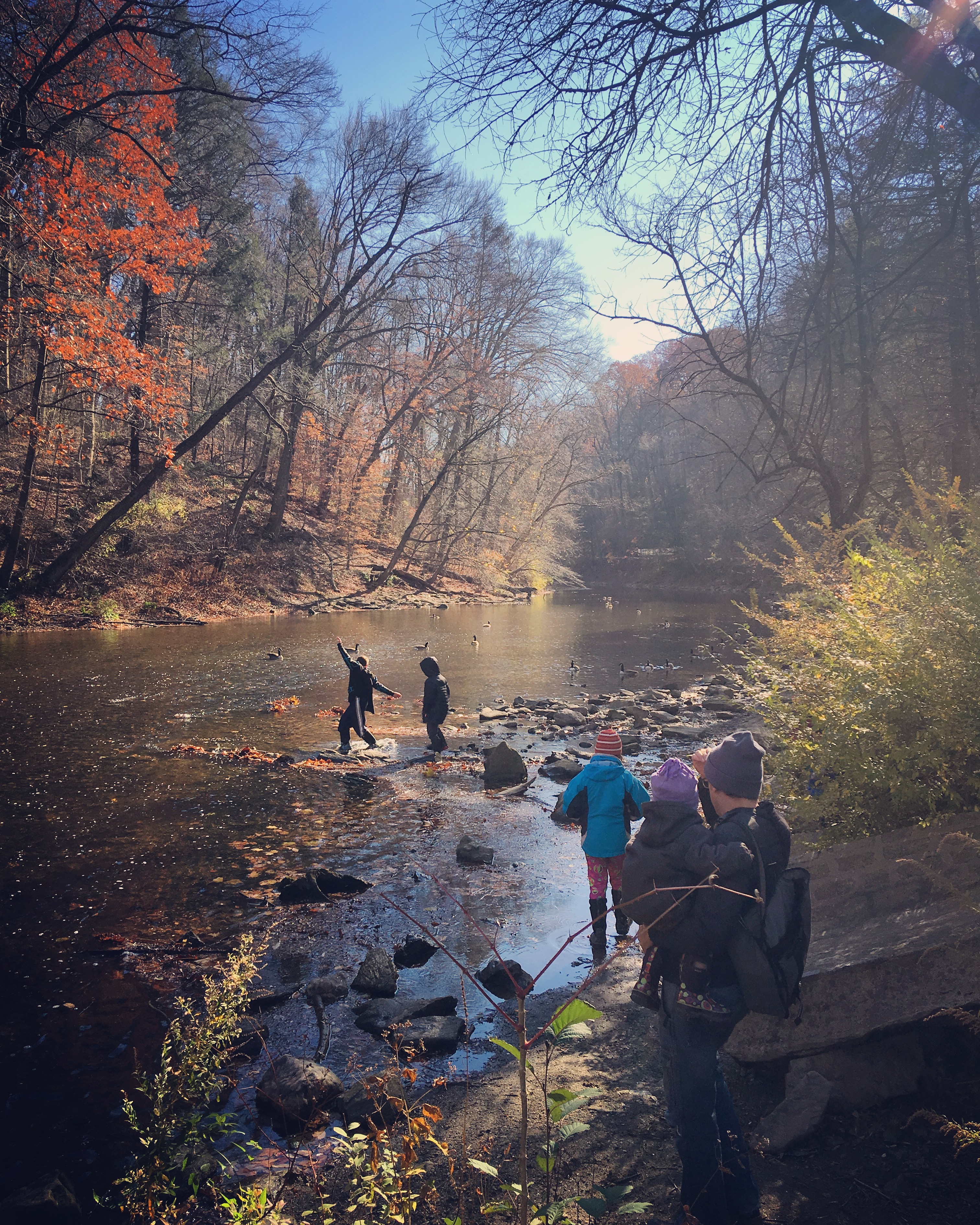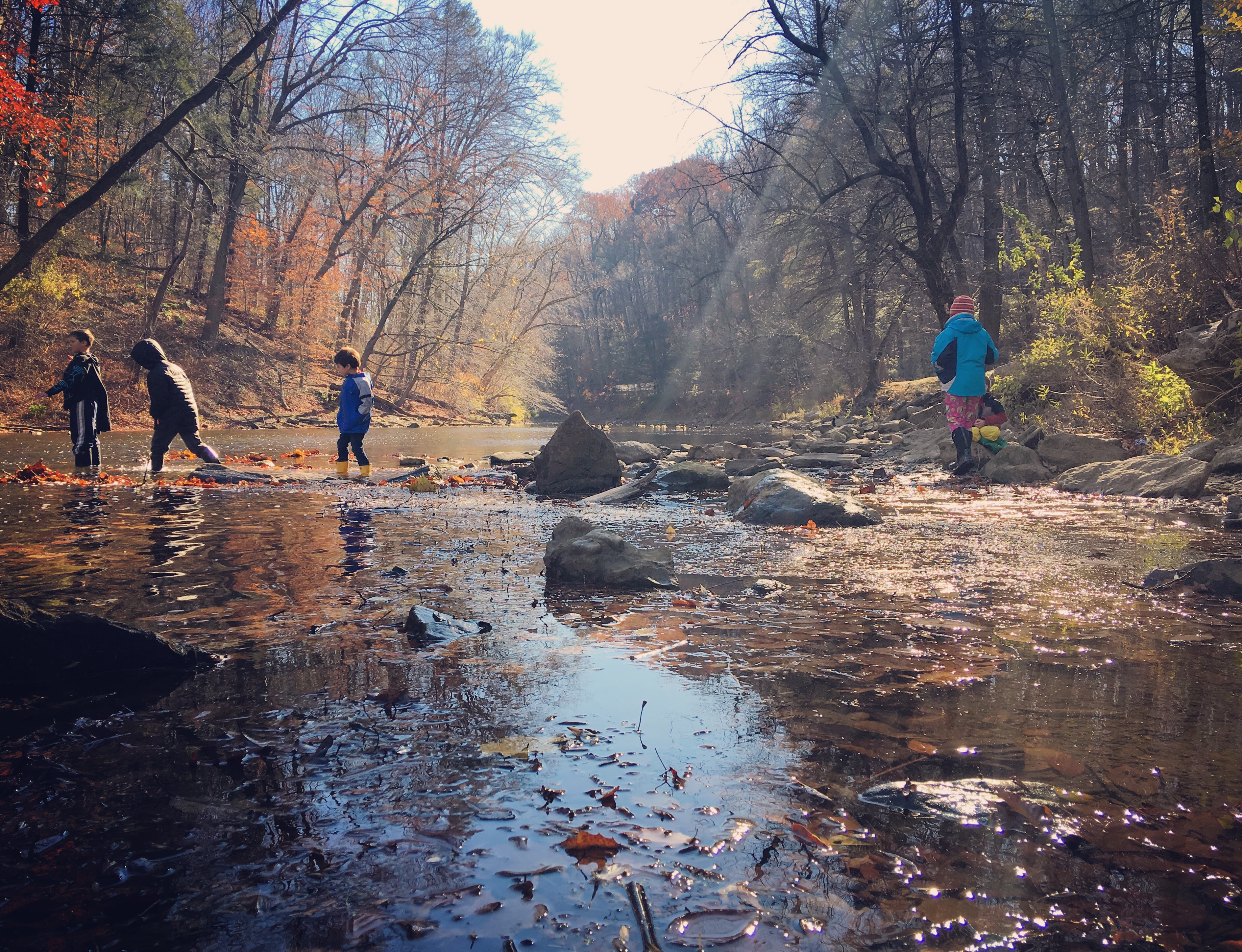 Philadelphia's Forest School For All Group met for the second time already. Despite starting the group just as winter approaches, we're off to a great start. The kids had a blast splashing in Wissahickon Creek and attempting to build their own beaver dam. Us parents are getting better at remembering rain boots and changes of clothing (and some wise parents have already invested in rain suits!). We're looking forward to meeting up again next Wednesday and hope more families in the community join us!