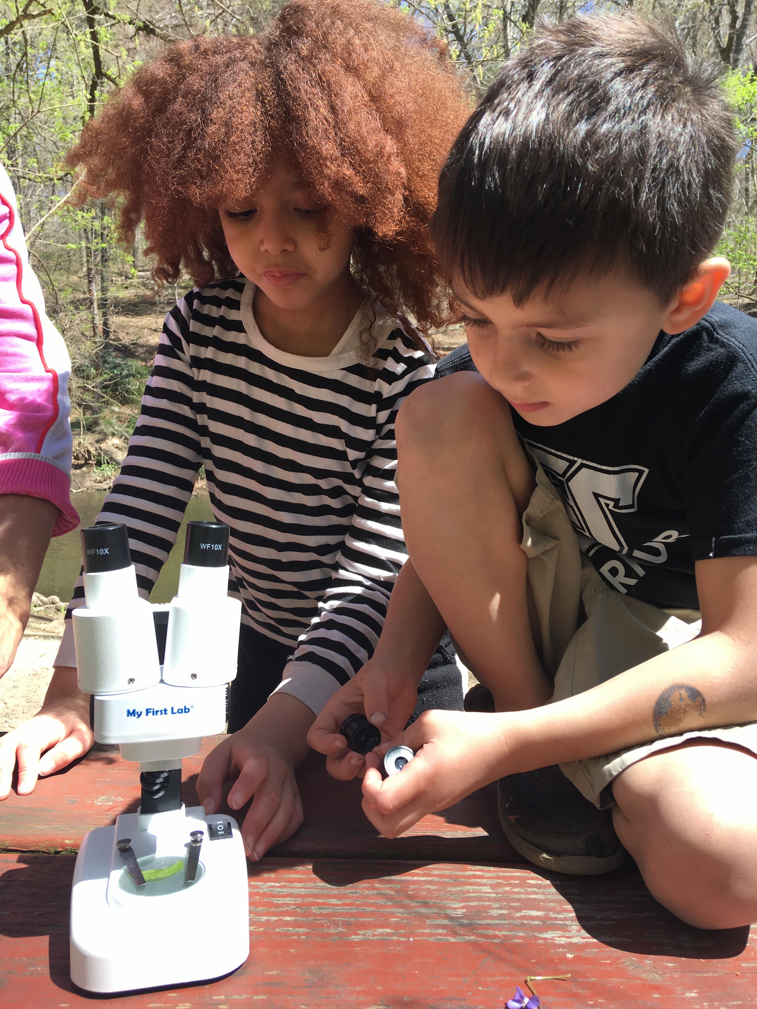 The weather couldn't have been more perfect for our first meet up of the spring. The kids loved exploring Wissahickon Creek and finding their own secret forts in the woods. We pulled out our microscope, and the kids loved observing flowers, leaves, and rocks up close. Hope to see you next week!